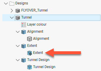 The model will be added to the project tree; expand it to see the different layers. For example, here a Tunnel file has been expanded in the project tree, showing the different layers: