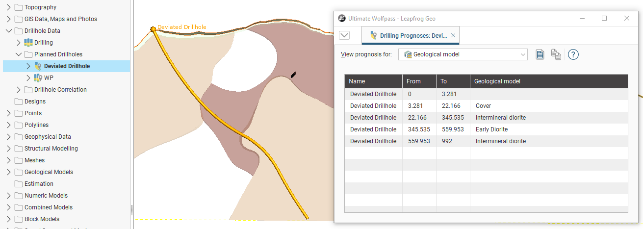 - Reflecting the expected lift and drift natural to the mineralisation and structure of various layers to observe the anticipated result for a planned drillhole