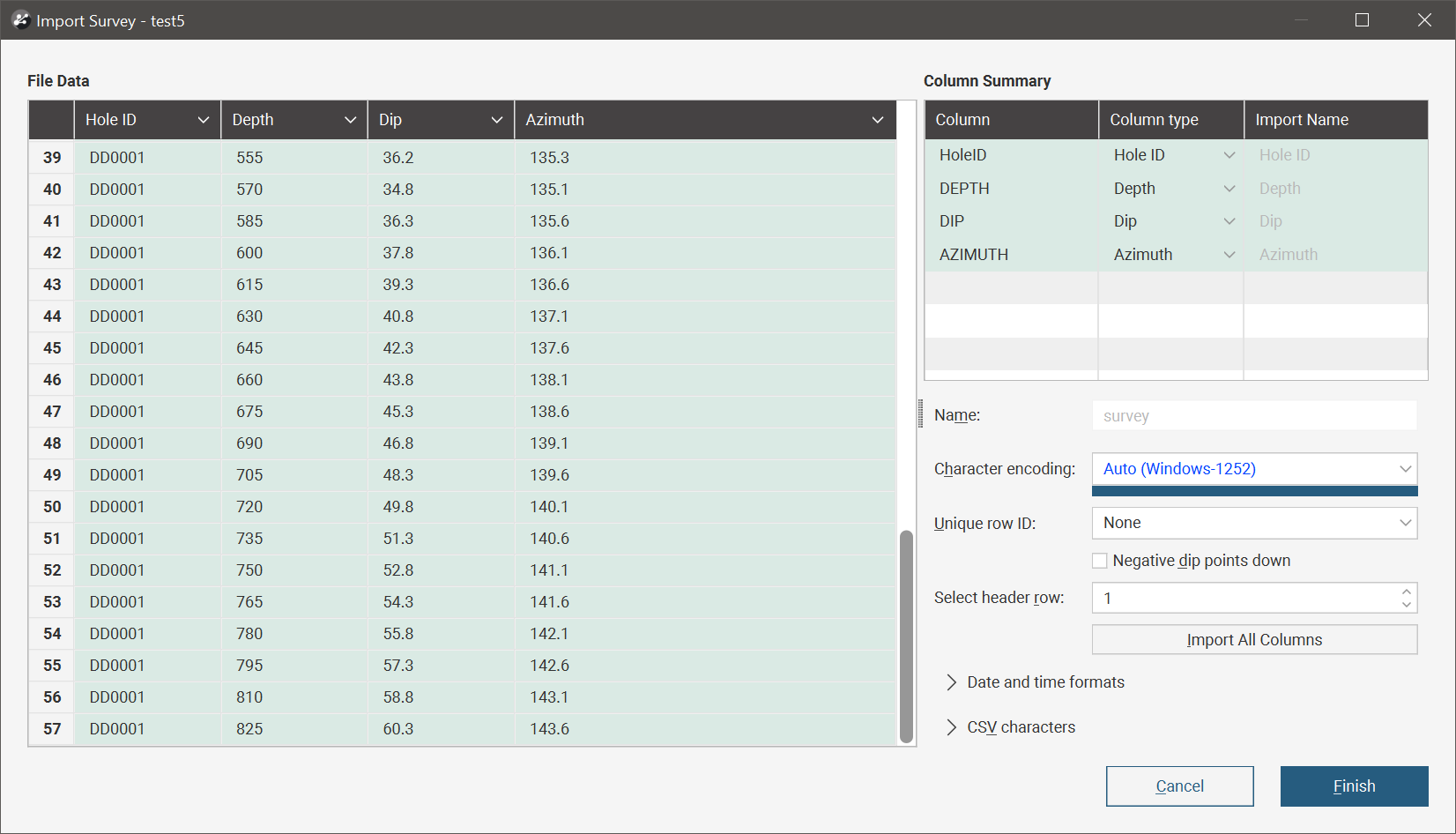 Leapfrog Geo imports planned multiple deviation drillholes from files in *.csv format.