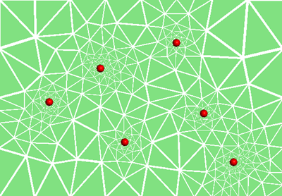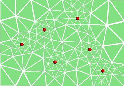 The images below show a grid displayed with collar points (in red) to demonstrate the effects of no features and collars applied with different refinement steps: