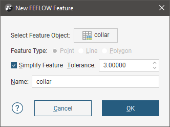 Select the object you wish to use, then click OK to return to the New FEFLOW Feature window.