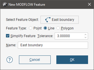 Select the object you wish to use, then click OK to return to the New MODFLOW Feature window.