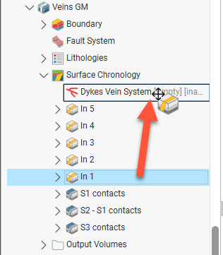 To move a vein out of a vein system, drag it onto the surface chronology: