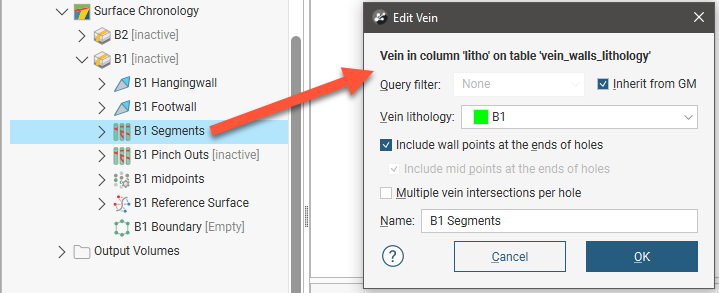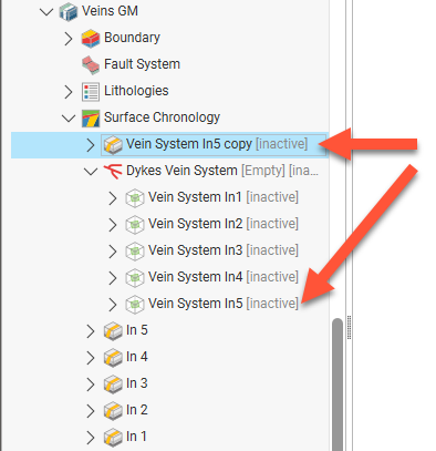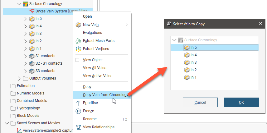 Click OK to create the vein, which will be added to the project tree as part of the Surface Chronology object.