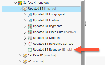 Click OK to create the new vein. The new contact surface will appear in the project tree under the Surface Chronology. Expand the vein in the project tree to see how it was made.