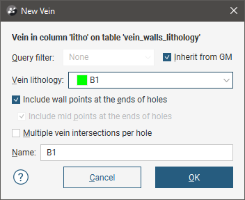 - From the geological model’s base lithology data. See New Vein From Base Lithology below.