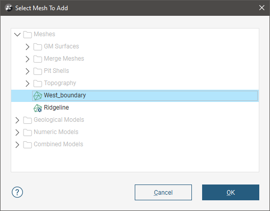 Select the required mesh and click OK. The extent will be added to the interpolant’s Boundary object.