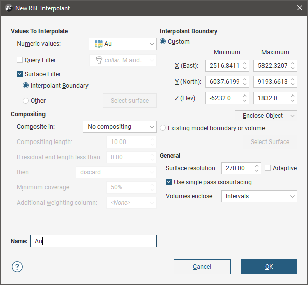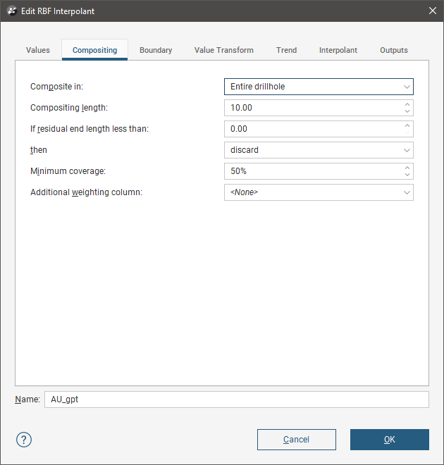 The Compositing tab will only appear for interpolants created from drilling data that has not been composited.