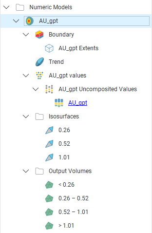 The new interpolant will be created and added to the Numeric Models folder. The new interpolant contains objects that represent different parts of the interpolant: