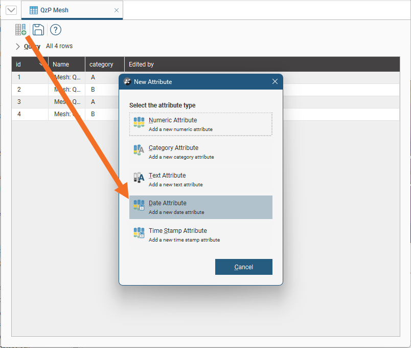 You can assign attributes to a mesh, which adds a new column to the mesh object. To do this, right-click on the mesh in the project tree and select Attribute Table. In the window that appears, click the Add a new attribute column button (