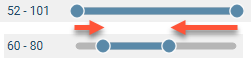 To switch to fine control, double-click anywhere along the range slider. Here the range of 52-101 has been expanded along the whole slider, giving you more control over the position of the range end points: