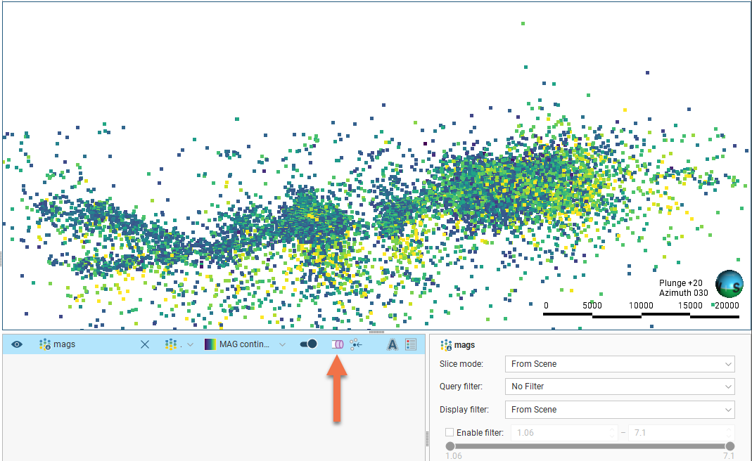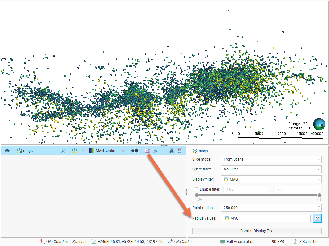 The Point radius setting then determines the maximum point size displayed in the scene.