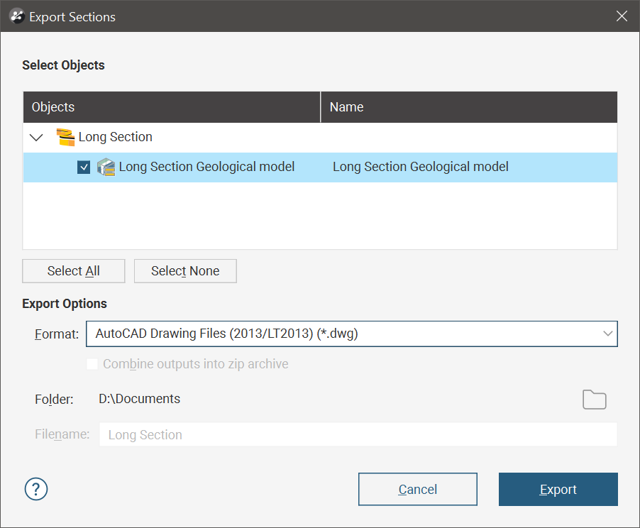 Once you have completed the long section designs, sections can be exported in various forms for sharing with other stakeholders. This includes: