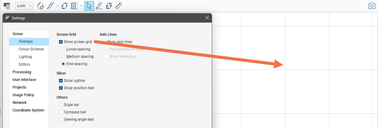 The Show screen grid setting determines whether or not the screen grid is displayed.