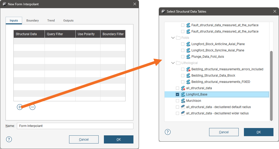 To create a form interpolant, right-click on the Form Interpolants folder (in the Structural Modelling folder) and select New Form Interpolant. In the window that appears, click the Add button (