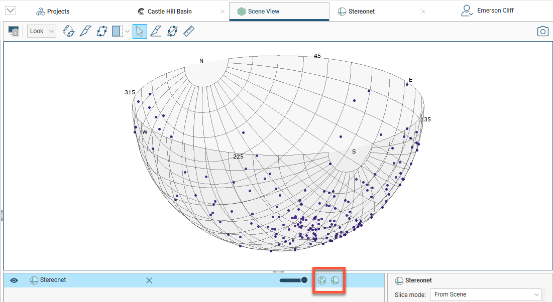 Otherwise, the appearance of the stereonet in the 3D scene is controlled from the stereonet window.