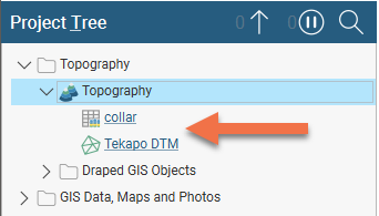Note that only objects that have been draped on the topography can be added to custom topography views. See Draping Data Objects on the Topography above for more information.