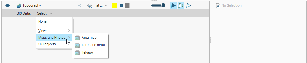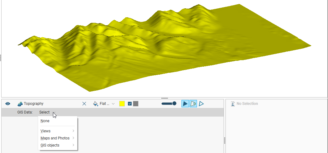 Note that only objects that have been draped on the topography are available from the GIS Data list. See Draping Data Objects on the Topography above for more information.