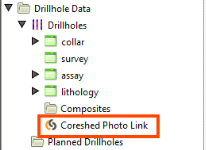 Before you can view core photos, you must first set up the Coreshed interface. To do this, right-click on the Drillholes object and select Add Core Photo Link. In the window that appears, select Coreshed and click OK. The Coreshed Photo Settings window will appear. Select whether each core photo will be opened in a separate browser Window or Tab.