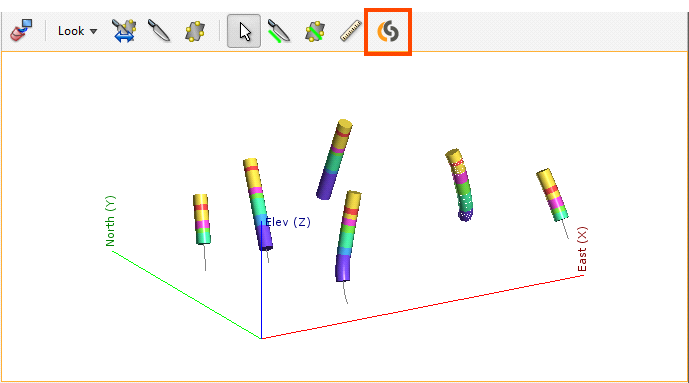 ) in the toolbar, then click on a drillhole in the scene. This will simultaneously: