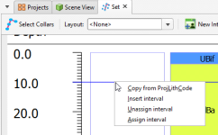 For example, to create an interval at the top of the table called “High Density”, move the blue line near to where you wish to create the interval. You do not need to be precise as you can adjust the interval once you have added it. Right-click and select Insert interval: