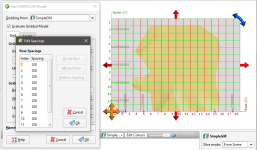 The grid should be slightly smaller than the selected geological model. Any MODFLOW cells that exist outside the geological model will be marked as inactive when the grid is exported to MODFLOW .