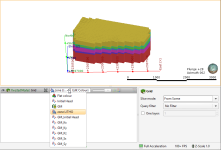 The viewing options available are the flat colour option, the evaluated geological model and zone data imported with the model. Other inputs imported with a model will also be available from this list, and once the model has been evaluated against a geological model or interpolant, you can also display the model using the grid’s hydrological properties.