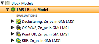 Click OK to process the evaluations, which will be added to the block model in the project tree: