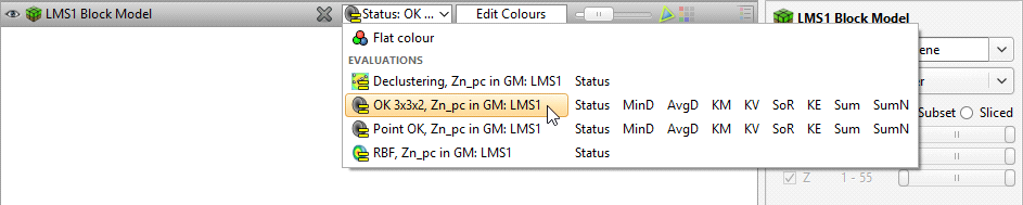 Sample geometries and estimators can be visualised by evaluating them on block models. To evaluate an estimator on a block model, right-click on the block model in the project tree and select Evaluations. See Block Models on how to work with the different types of block models available in Leapfrog Geo.