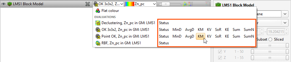 When you select Evaluations, the block model’s main window will be opened with the Evaluations tab displayed: