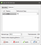 You can edit the feature by double-clicking on it or by right-clicking and selecting Open. However, the feature has not yet been applied to the grid. To enable the feature, double-click on the grid to open the Edit 2D FEFLOW Grid window. Tick the box to enable the feature, then adjust the number of Refinement Steps: