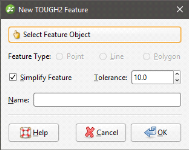 The New TOUGH2 Feature window will appear: