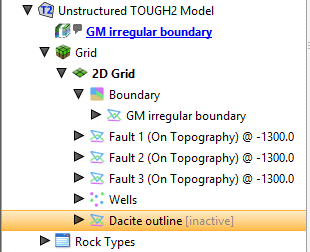 Click OK to add the feature, which will appear in the project tree under the TOUGH2 grid object: