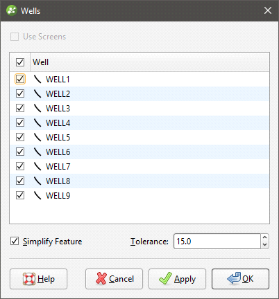 If screens are included in the well data, there will be a Use Screens option. When enabled, the x-y coordinates of the mid-point of the screen intervals will be used for the centre points. Otherwise, the x-y coordinates of the collar will be used.