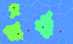 The Block size setting determines the basic size of the blocks that make up the grid, although the size will vary according to features applied to the grid and the Feature snapping distance. The size will also vary if the Simplify boundary option is unticked, in which case the Block size setting is the maximum size of the blocks.