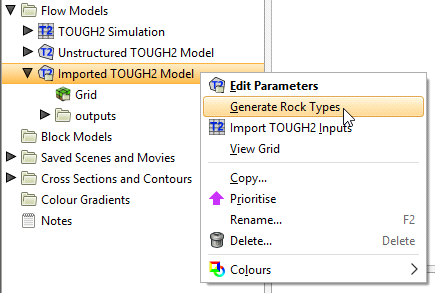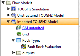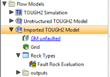 The TOUGH2 model will appear in the project tree under the Flow Models folder. You can then load TOUGH2 inputs and outputs and generate rocktypes.