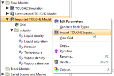 If you have imported a TOUGH2 grid, you can load the model inputs. To do this, right-click on the model in the project tree and select Import TOUGH2 Inputs: