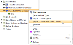 To import the outputs, right-click on the model in the project tree and select Import TOUGH2 Simulation Outputs: