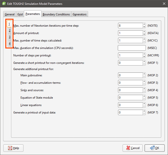 TOUGH2 Parameters