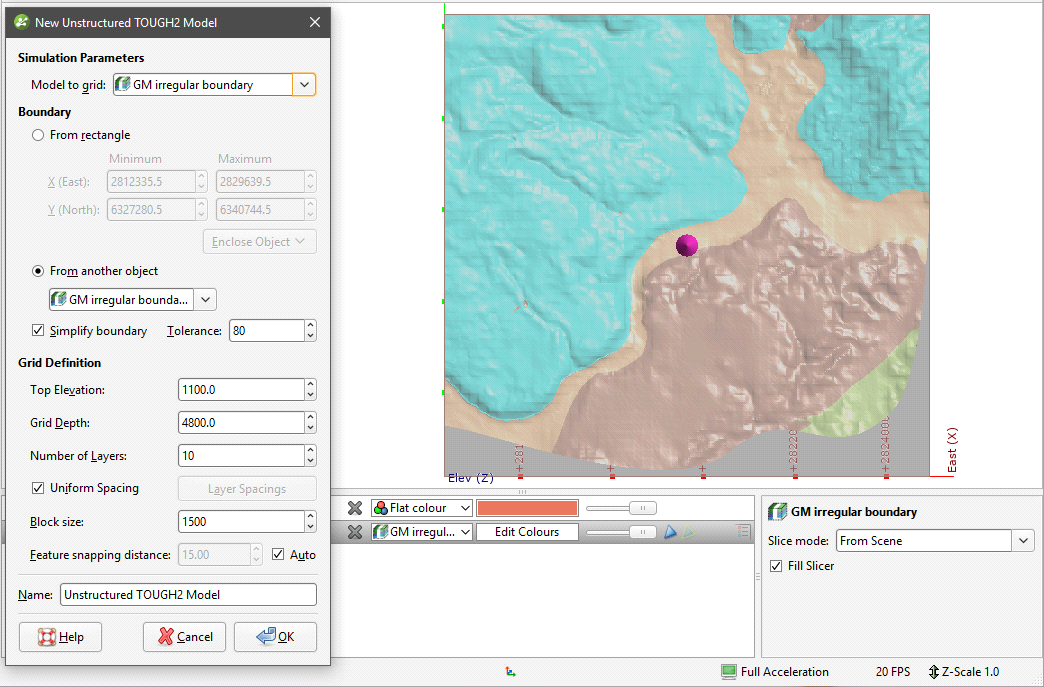 To create a new unstructured TOUGH2 model, you must first have at least one geological model defined in the project.