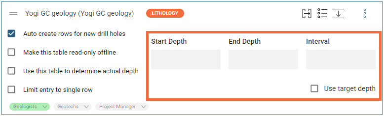 Enabling this setting streamlines data entry for loggers. It is most often used in grade control when all drill holes will be the sample depth.