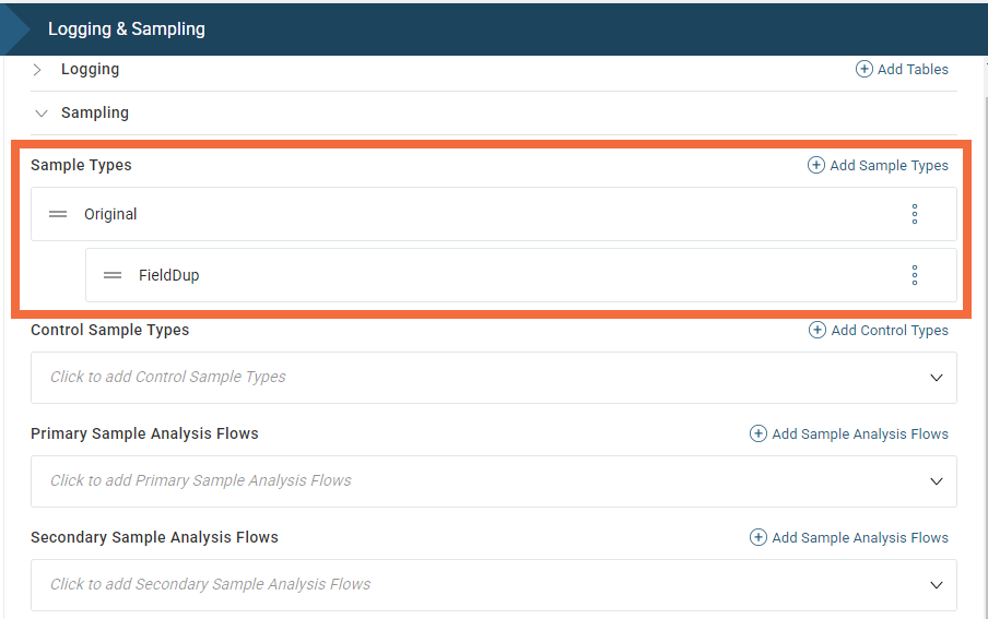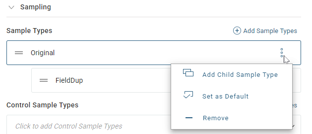 Original and FieldDup sample types are added by default.