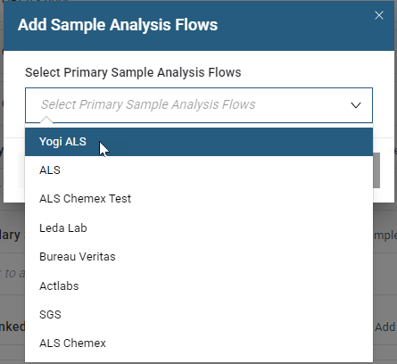 It is not required to use a sample analysis workflow. If you choose to add one, click on Add Sample Analysis Flows under Primary Sample Analysis Flows to display the analysis workflows available to choose from.