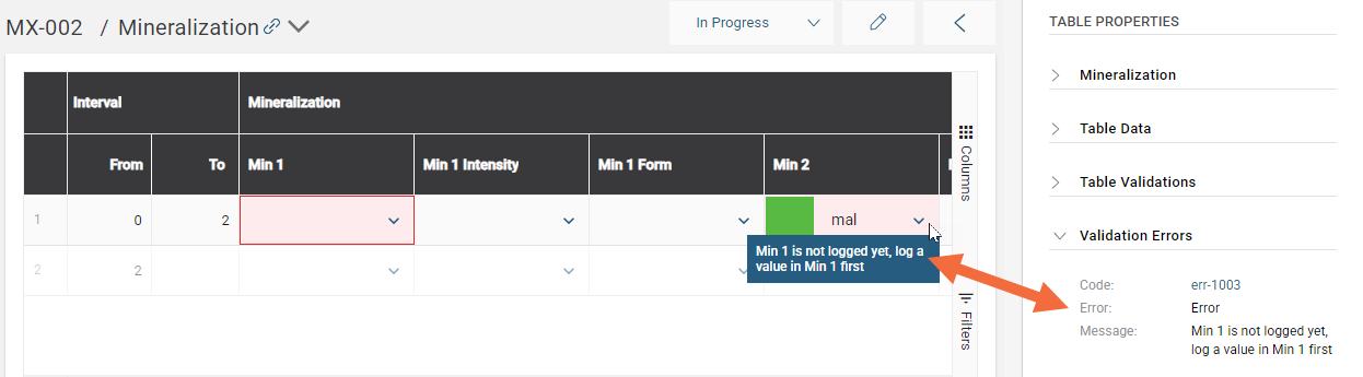The result is that when a logger tries to enter the Min2 value before the Min1 value has been logged, they will receive an error message: