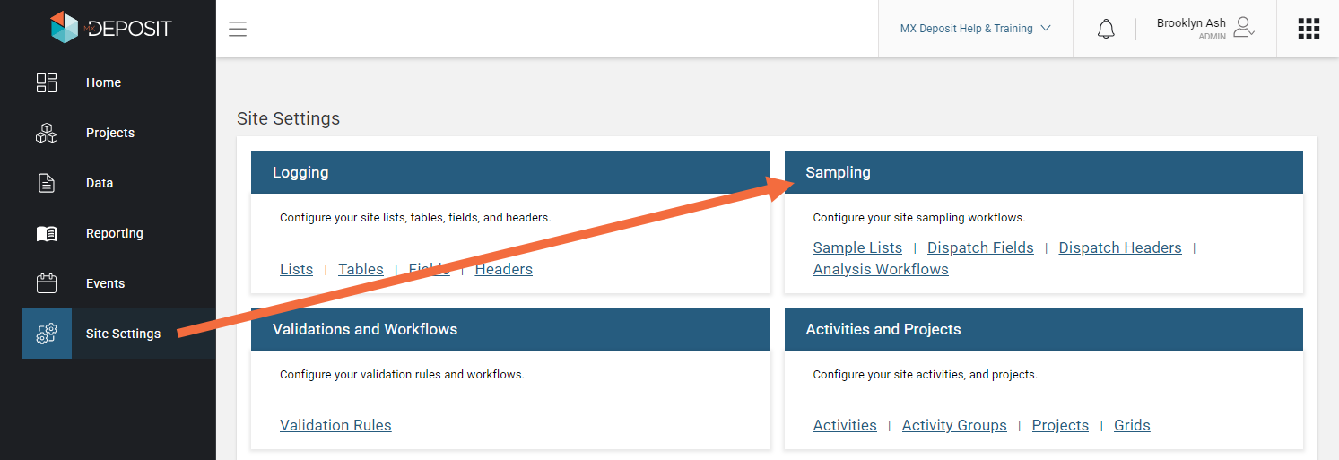 This part of the help is for MX Deposit admins who are configuring the sampling process for the wider team. To start, click on Site Settings, then on Sampling:
