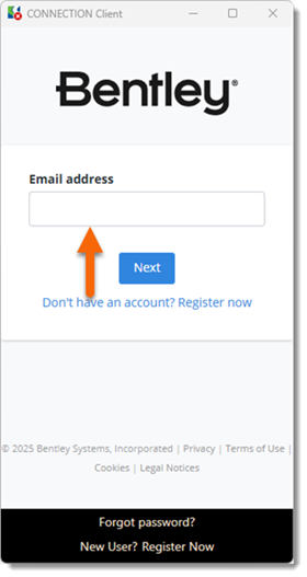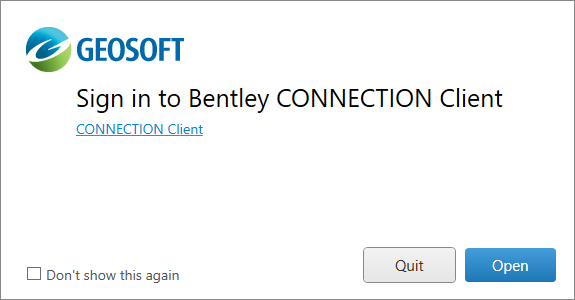 Click Open to launch the CONNECTION Client and enter your Bentley credentials: