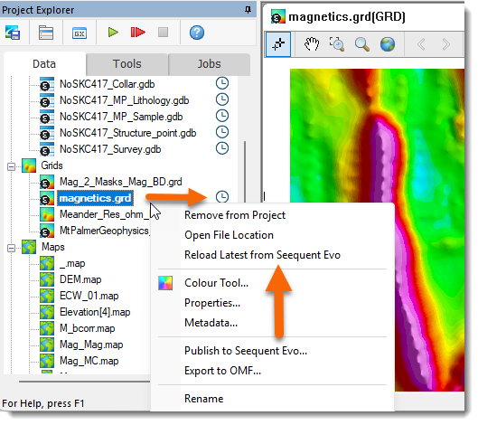 To update imported data to the latest version, see Reload from Seequent Evo below.