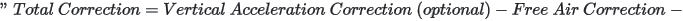 The Total Correction includes the vertical acceleration, Eötvös, tide (optional), latitude, and free-air corrections: