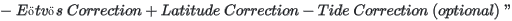 See Vertical Acceleration Correction, Eötvös Correction, Earth-Tide Correction, Latitude Correction and Free-Air Correction for the formulas.