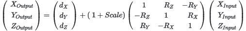 dX, dY, dZ = translation parameters, specified in metres (m)